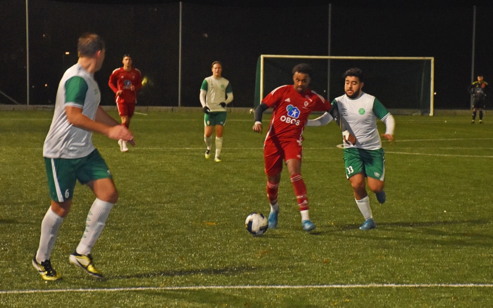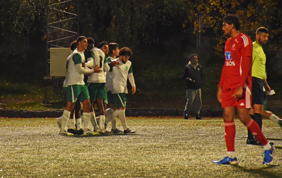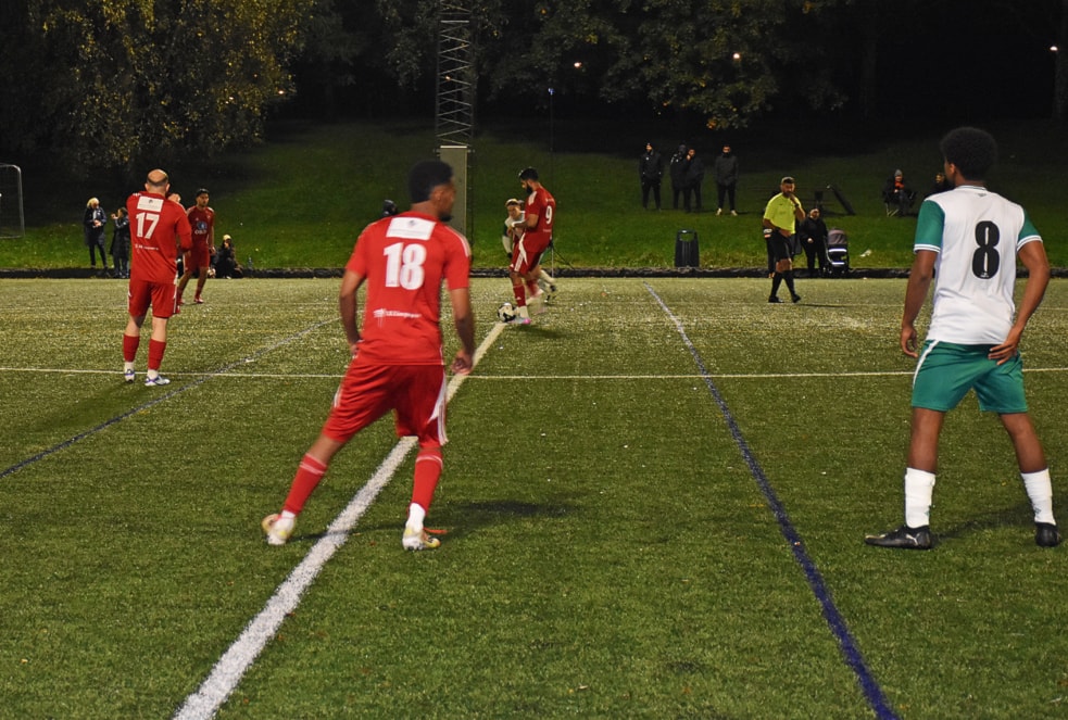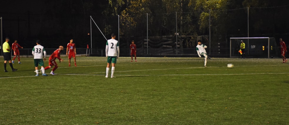 Kaptein Kasper styrte det kompakte forsvaret slik at Holmlia følte de måtte fyre av noen langskudd som fløy litt alle steder. Men etter tjuefem minutter fikk de spilt seg til en corner. Kaptein Islam satte ballen i mål til redusering 2–1.