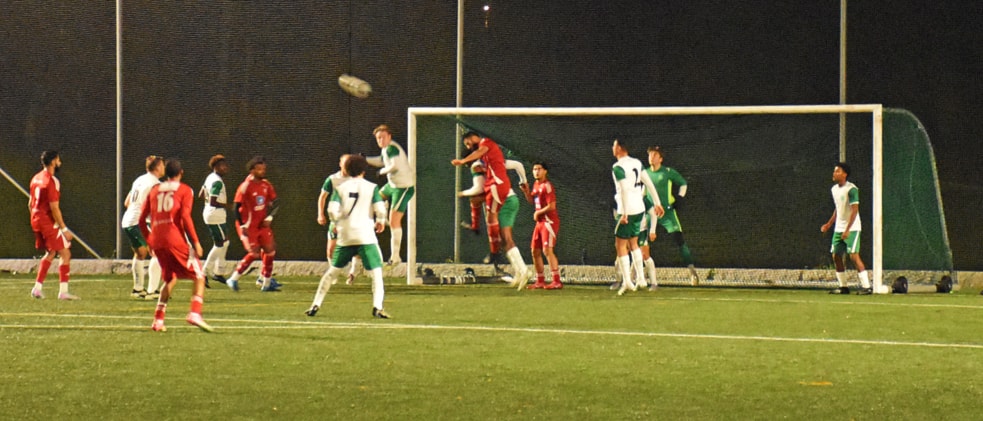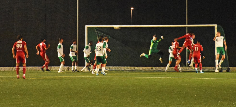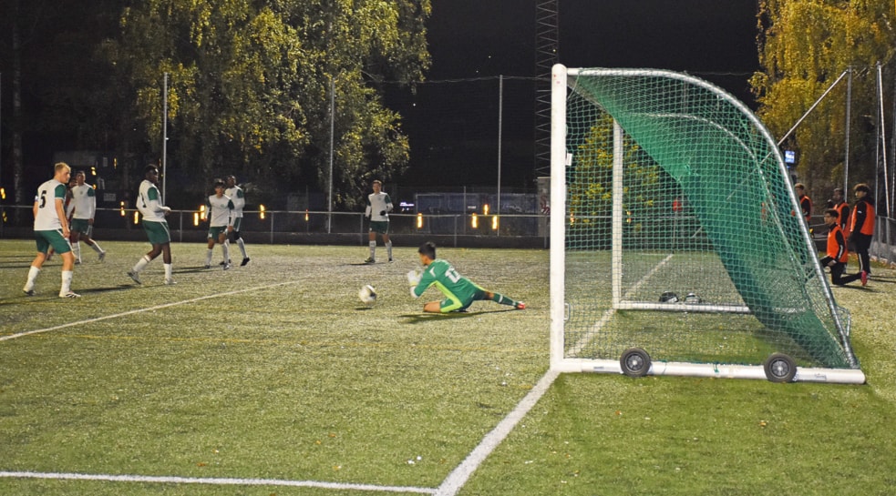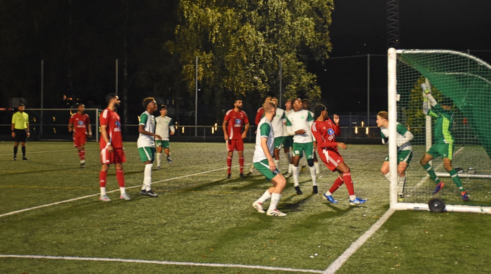 . . . og fikk nok å gjøre. Her er det cornersparket fra Holmlia som ble redusering til 2–1