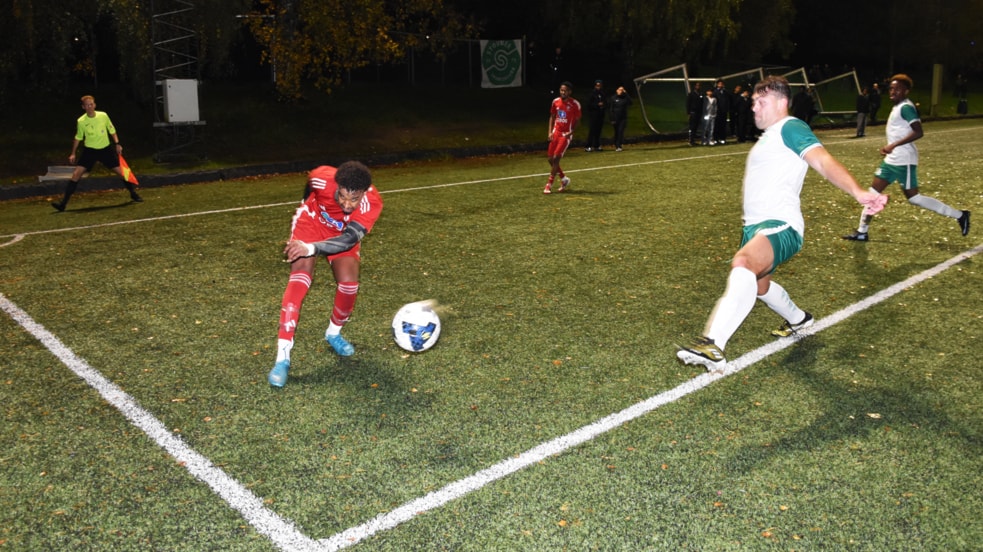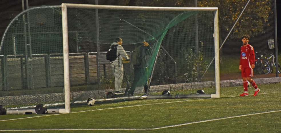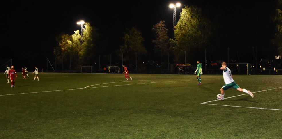 Beklager bildekvaliteten. Alt dreier seg om lys og objekter i fart. Lyset er nokså dårlig på Rommensletta, og blir forsterket av den svarte gummigranulaten, og delvis av de høye bjørkene. Før kampen ble Marcus og jeg enige om at hvis han gjorde en god kamp skulle jeg lage gode bilder. Han vant så definitivt.