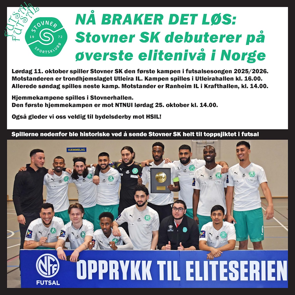 Stovner SK Menn 5er 1 ønsker velkommen til Eliteserien Futsal
